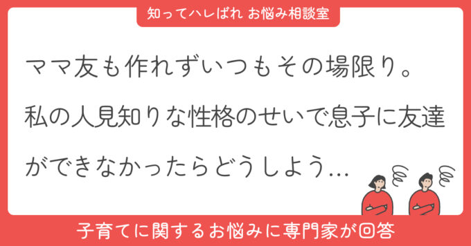 ママ友ができない私。私の性格が「子どもの友達作り」に響く不安を「挨拶」から変えるヒント【お悩み相談室】