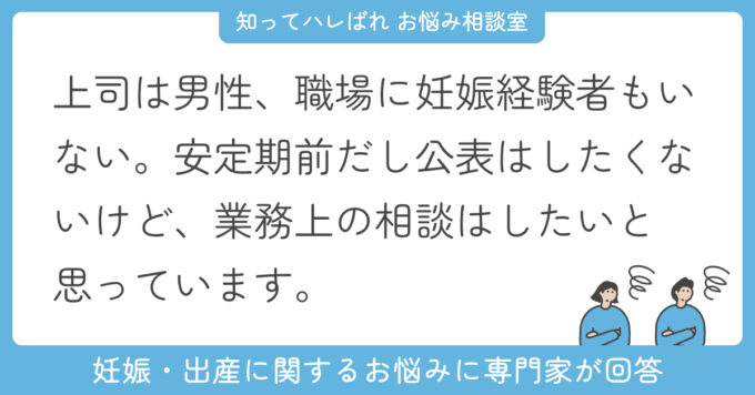 妊娠初期のつわりがつらい。男性中心の職場で妊娠報告と業務相談をどう伝える?【お悩み相談室】