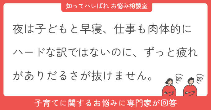 「何もしてないのに疲れる」慢性的な育児のだるさの原因は?【お悩み相談室】