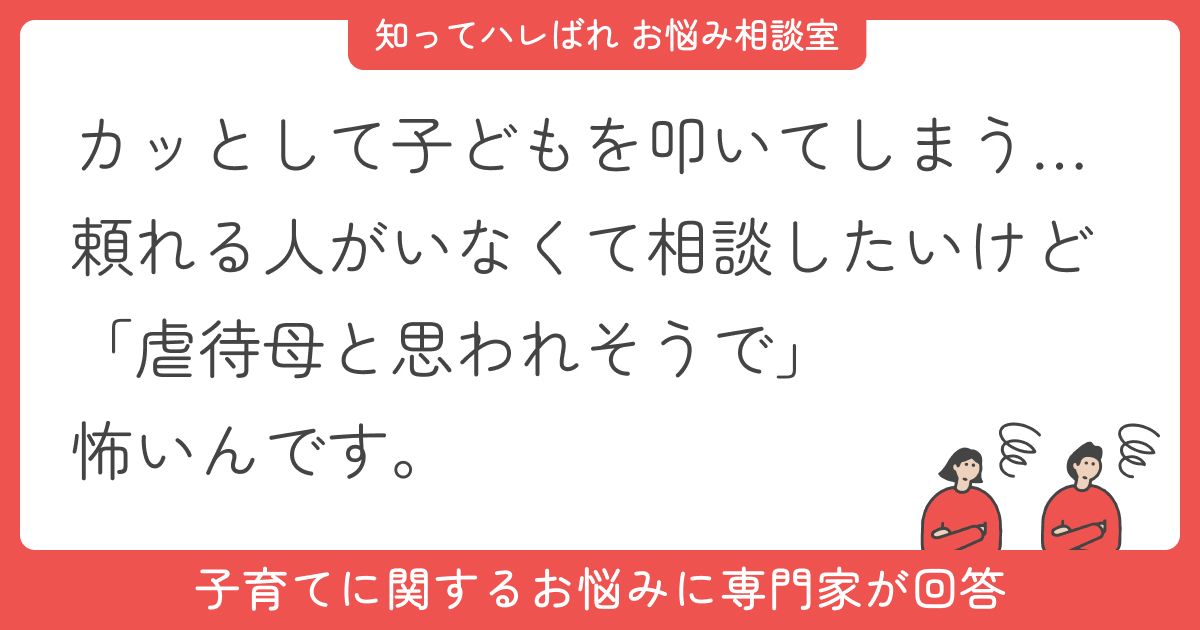 5歳の息子は、やってはいけないことを何度言っても繰り返し、イライラが止まりません。私もカッとなってつい叩いてしまうこともあり、「ママごめんなさい!」と泣きじゃくる姿を見ては自己嫌悪の繰り返しです。市の育児支援などに相談したいのですが叩いてしまう虐待母だと思われるのも怖くて、相談できずじまいです。