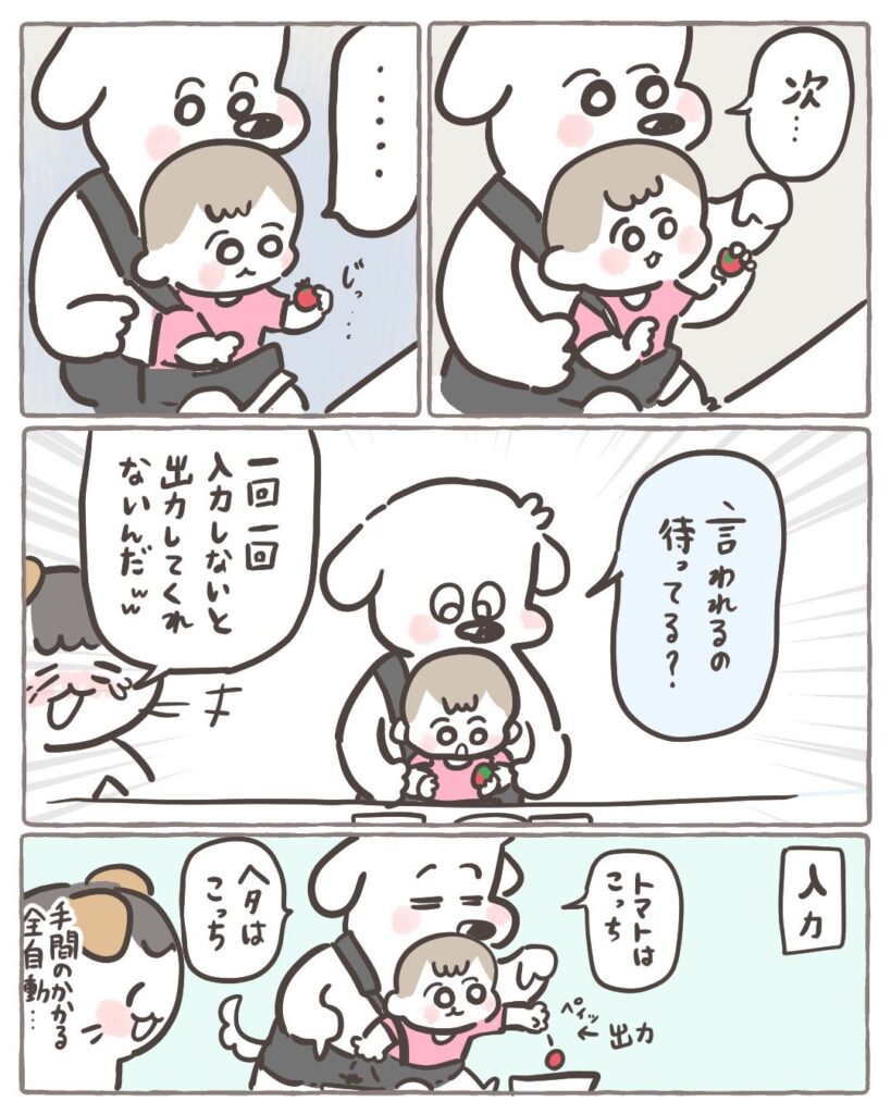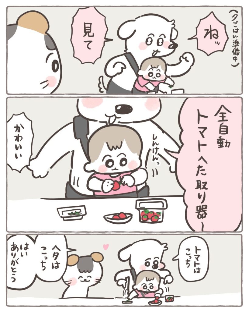 最初に反響があったのは「全自動ミニトマトヘタ取り機」という漫画です。コイチャン(子ども)にミニトマトのヘタを取ってもらうっていうだけの話なんですが、これがなぜかすごく反響をいただいて。