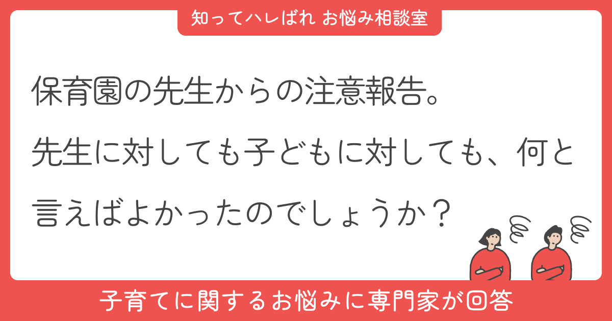 こういうとき、先生にはどう声を返すのが良かったのか、子どもに負担をかけず気を付けてねというには、どんな言葉をかけると良いのか、アドバイスをいただきたいです。