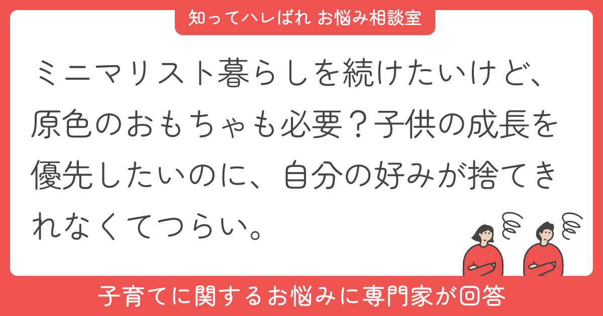 ミニマリストとして整った空間を大切にしてきたものの、お子さんの誕生を機に「原色や多すぎる玩具を避けるのは親のわがまま?」と、ご自身の美意識と育児の両立に迷いを感じておられる30代の主婦の方からのご相談です。