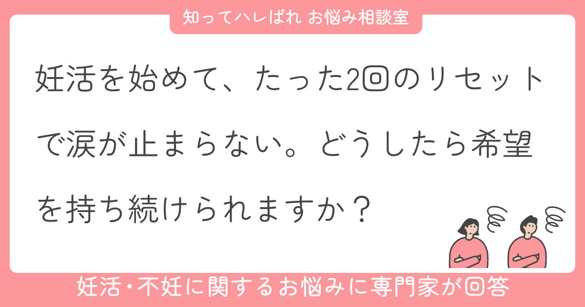 トップ > 妊活・不妊 > 妊活でリセットのたびに自分を責めてしまうあなたへ【お悩み相談室】