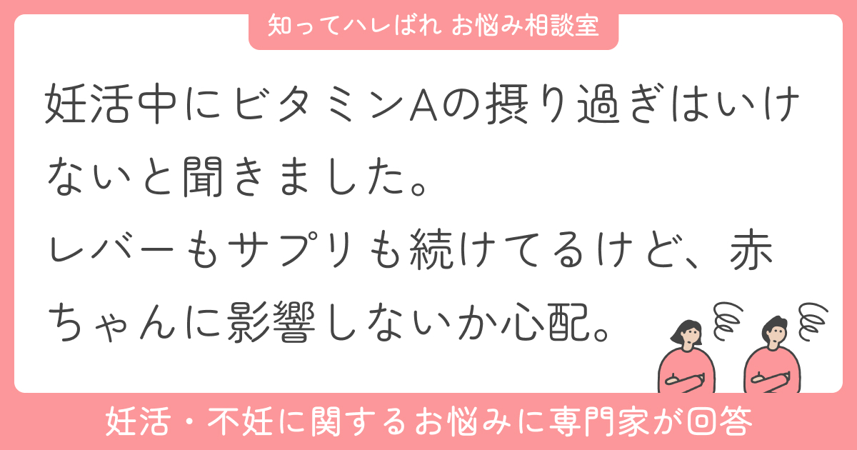 その一方で、「ビタミンAを摂りすぎると胎児に影響がある」という情報を目にされ、不安を感じていらっしゃるとのこと。