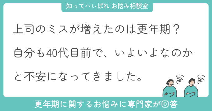 今回は、更年期の影響かもしれないミスが増え、職場での居心地が悪くなってしまったと悩む50代の女性からのご相談です。思い込みによる失敗を繰り返し、肩身が狭い思いをしているものの、退職すると後悔しそうで決断できないとのこと。