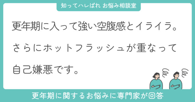 更年期の症状として、発汗や不眠、そしてイライラといったつらい変化が続いていらっしゃるのですね。しかも、それが閉経後に強くなったとのことで、日常生活の中でご自身の心と身体の変化に振り回されるような思いをされているのではないでしょうか。