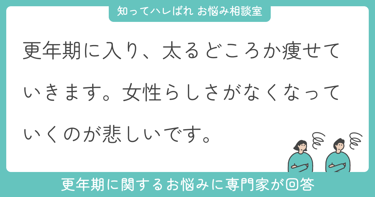 更年期に入ってからの“痩せてしまう”お悩みですね。