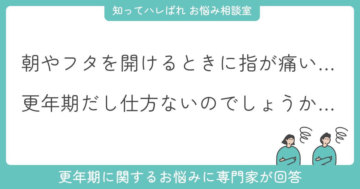 最近、指の関節がズキズキ痛む。もう歳だし、更年期のせいで仕方ないですか?