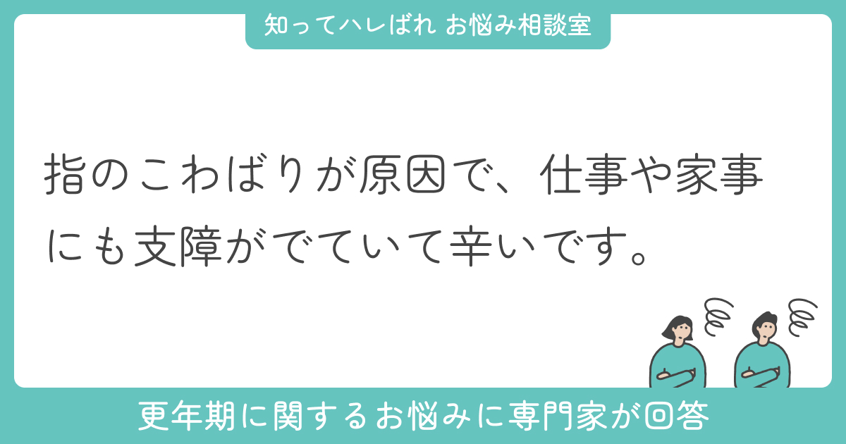 今回は、更年期に入り指のこわばりを強く感じ、仕事にも支障がでてしまっている50代女性からのご相談です。