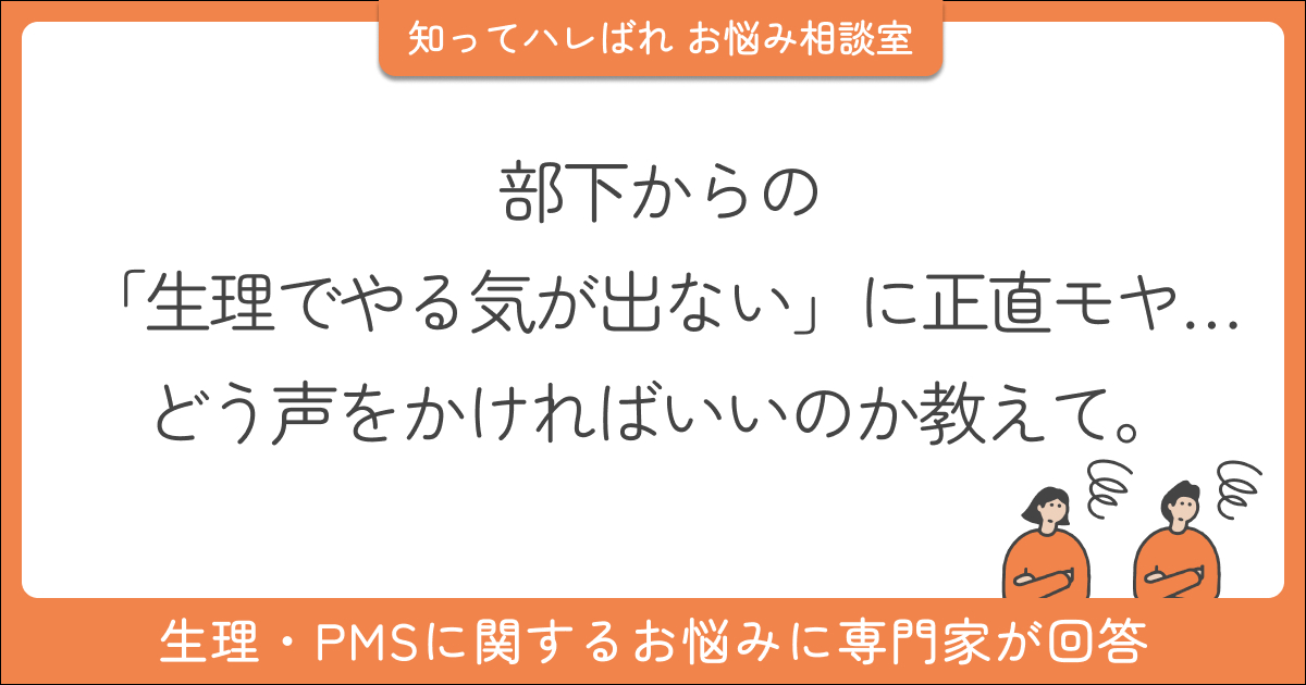 今回は、月に1回ほど「生理なので今日はやる気が出ません」と言う部下への対応に迷う40代女性からのご相談です。