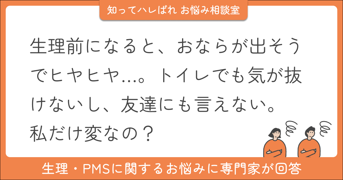 今回は、生理前になるとお腹にガスが溜まり、授業中や友達の前でおならが出そうになることに悩む10代女性のご相談です。