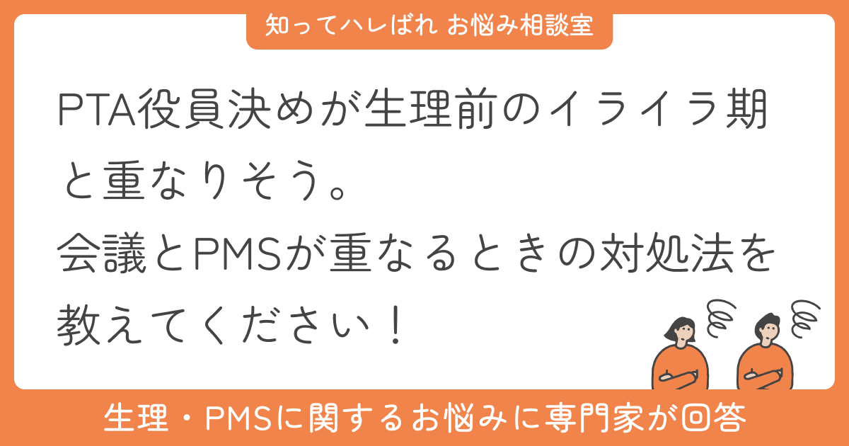 今はパート勤務をしながら小学生を子育て中なのですが、もうすぐPTA役員決めの集まりがあり、ただでさえ憂鬱な会なのにPMS期にかぶってしまいそうです。