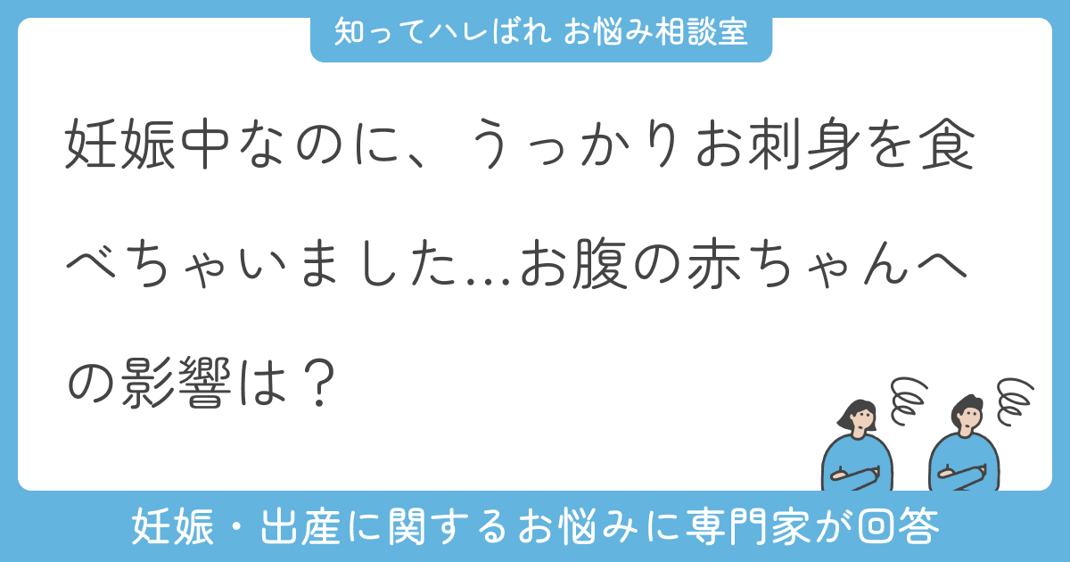 今回は、妊娠中にお刺身を食べてしまい、胎児への影響を心配している30代女性からのご相談です。妊娠中のお刺身について、実際どこまで注意すべきか知りたいようです。