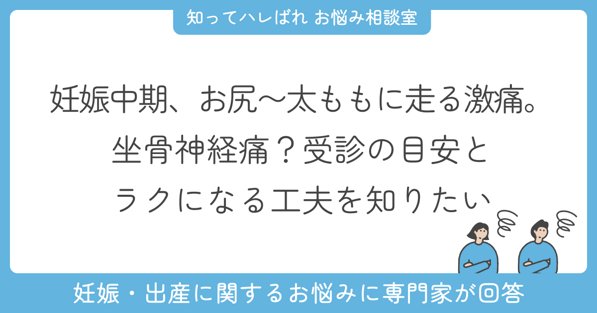 今回は、妊娠中期にお尻から太ももへズキッと走る痛みに悩む30代女性からのご相談です。