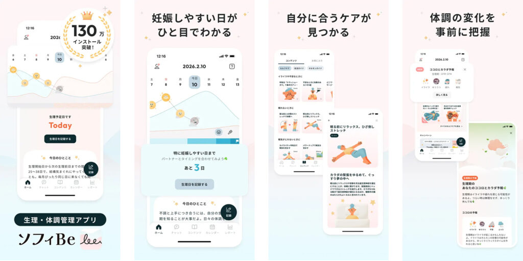 「ソフィBe」は、ホルモンバランスと体調の関係を見える化し、日々のリズムを知ることで安心して過ごせる日々をサポートする生理・体調管理アプリです。本サービスの提供を通じて、女性一人ひとりが自ら心身の管理を行い、健康と生活の質を向上させることを応援します。